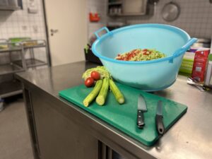 Unsere hauseigene Kochküche versorgt alle Kinder in der Kinderfamilie mit einer Vormittagsmahlzeit, dem Mittagessen und der Vesper. Verschiedene Getränke stehen für unsere Kinder in ihren Gruppen bereit.